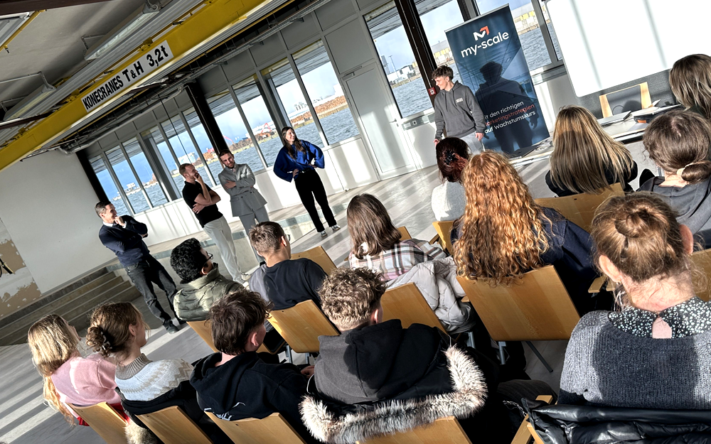 Gemeinsam mit Studierenden aus Rostock und Umgebung haben wir und mit dem Bustour auf den Weg nach Wismar gemacht. Vor Ort besuchten wir die Unternehmen Lachs von Achtern und my-scale, die spannende Einblicke in kreative und digitale Arbeitsfelder boten. Zum Abschluss gab’s natürlich noch ein Fischbrötchen am Hafen – ganz entspannt mit Meerblick.